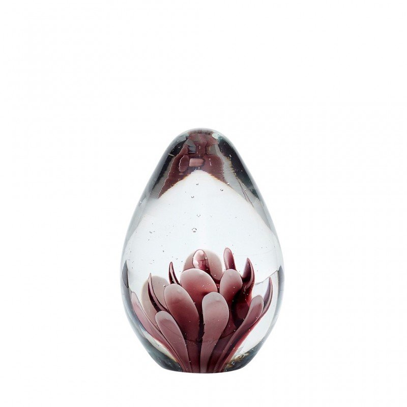 Pisapapeles fabricado en cristal con elemento floral decorativo del fabricante escandinavo HUBSCH. Elegante pieza para sujetar papeles, libros o como decoración de cualquier rincón de la casa, mesa, despacho, oficina... Dimensiones: ø7 x h10 cm.